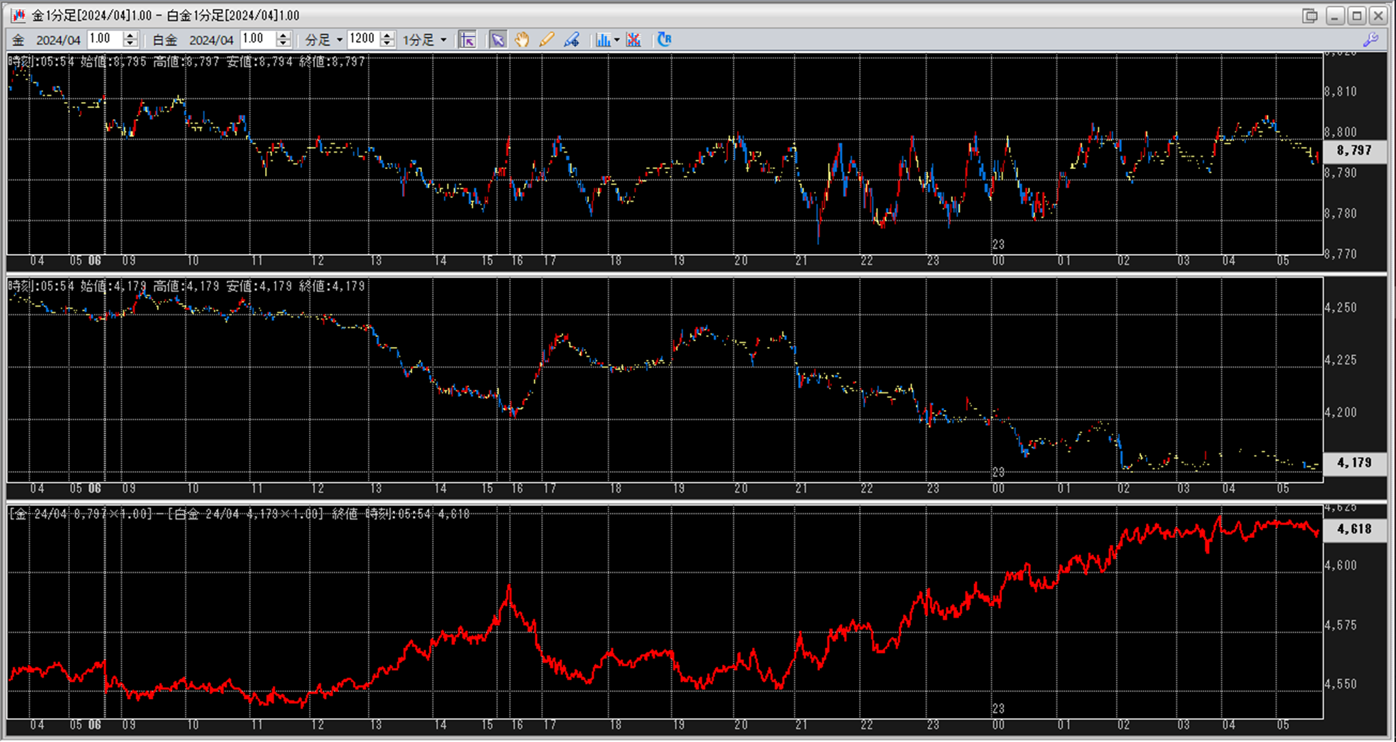 上:大阪取引所 金 2024年4月限 1分足