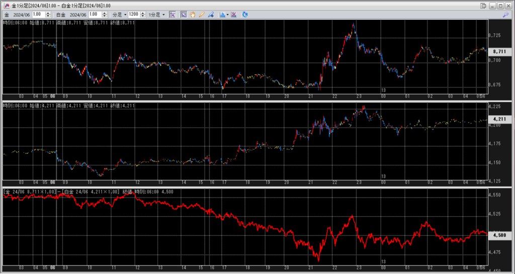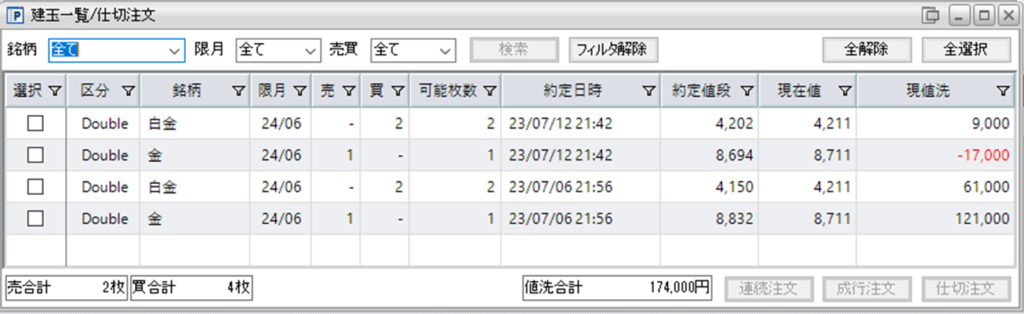 現在、鞘縮小の仕掛け金売り1枚-白金買い2枚を2組を保持しています。