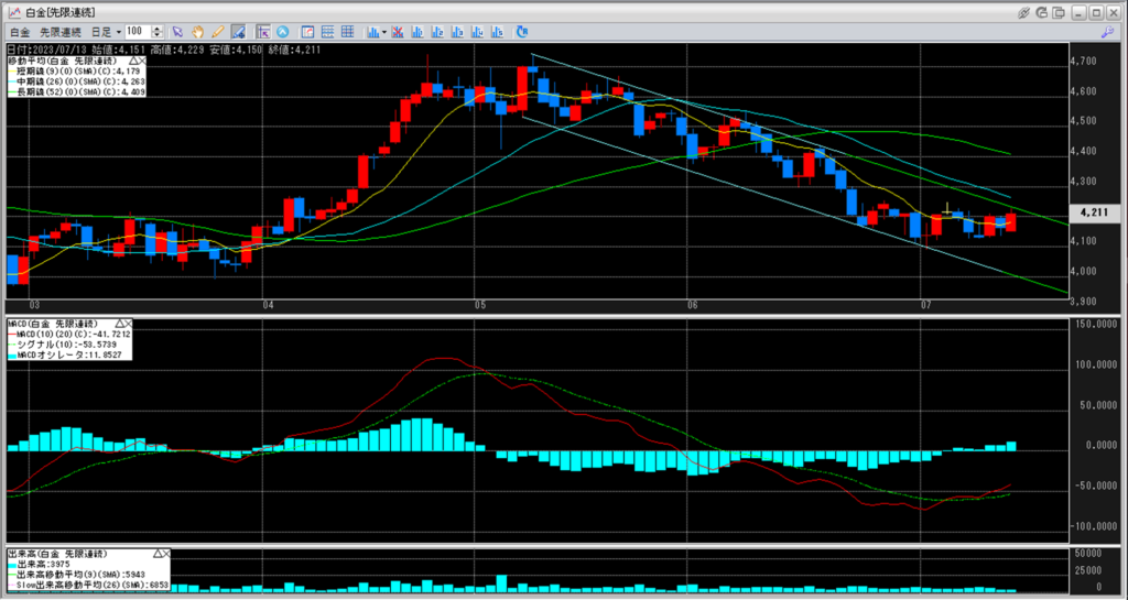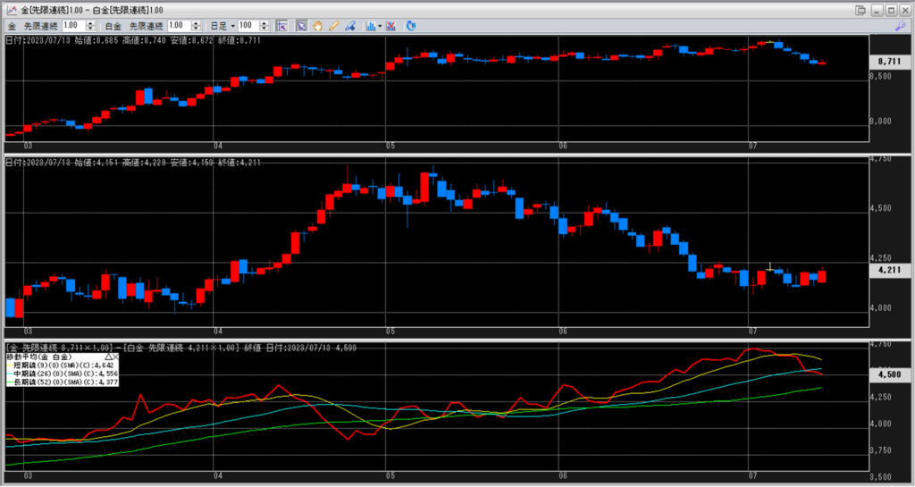 下記に金白金鞘の移動平均線のチャートを貼り付けています。