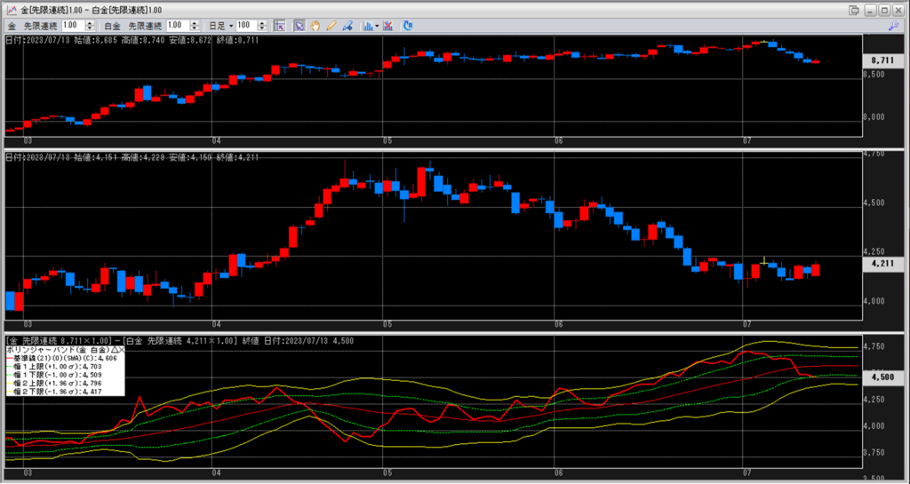 金白金の鞘をボリンジャーバンドで見ていきます。