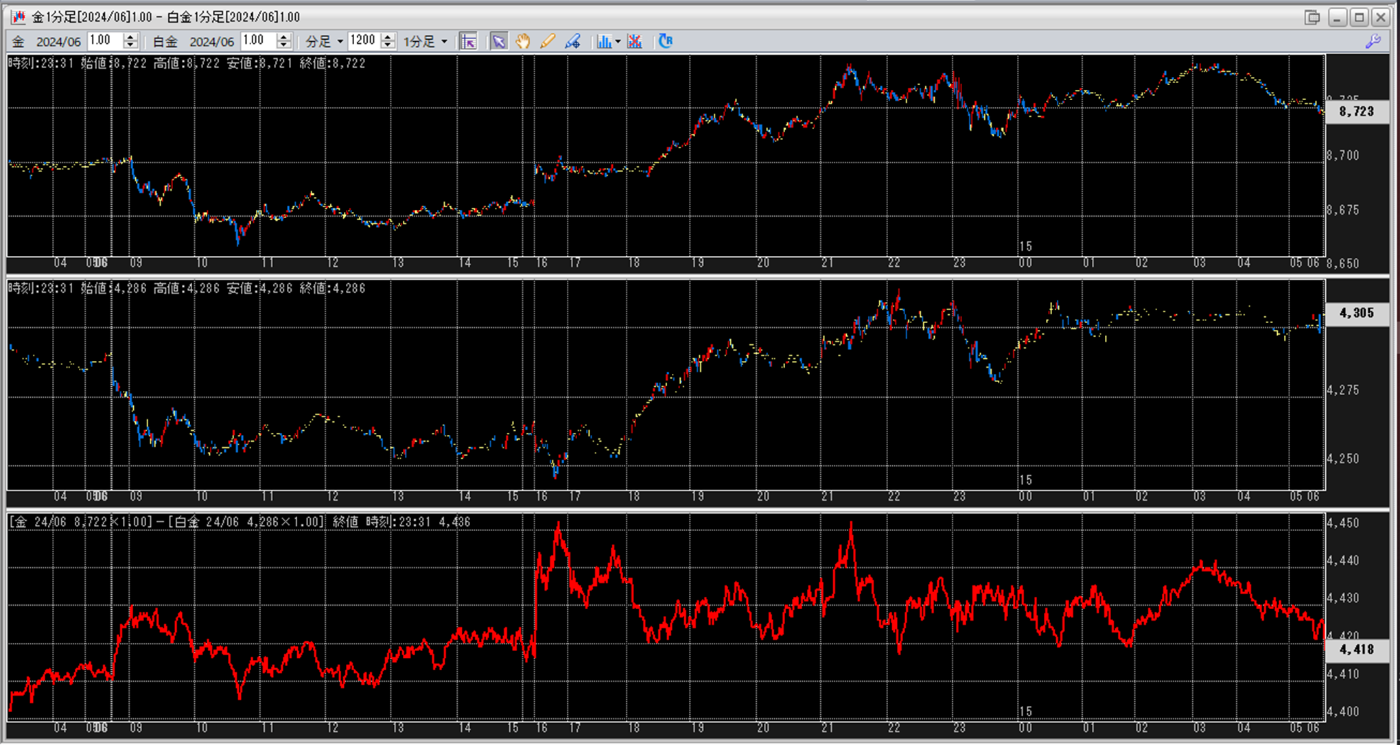 上:大阪取引所 金 2024年6月限 1分足