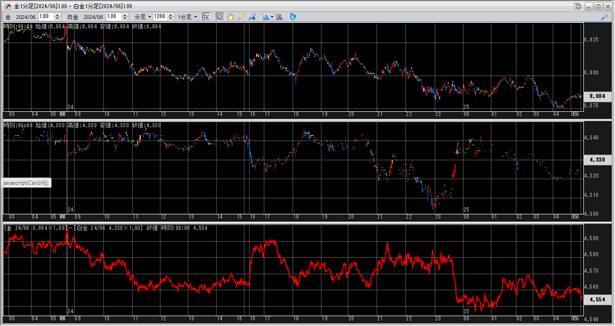 上:大阪取引所 金 2024年6月限 1分足