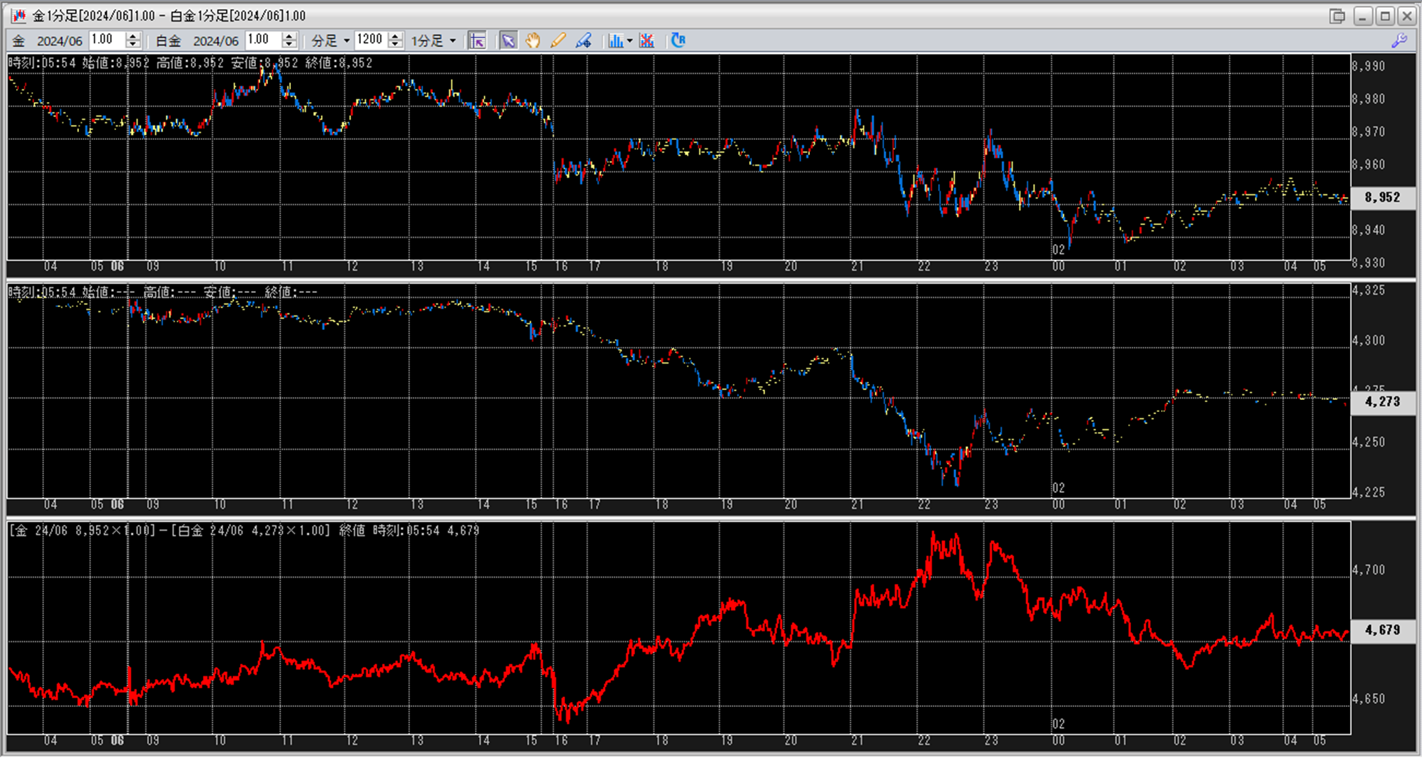 上:大阪取引所 金 2024年6月限 1分足
