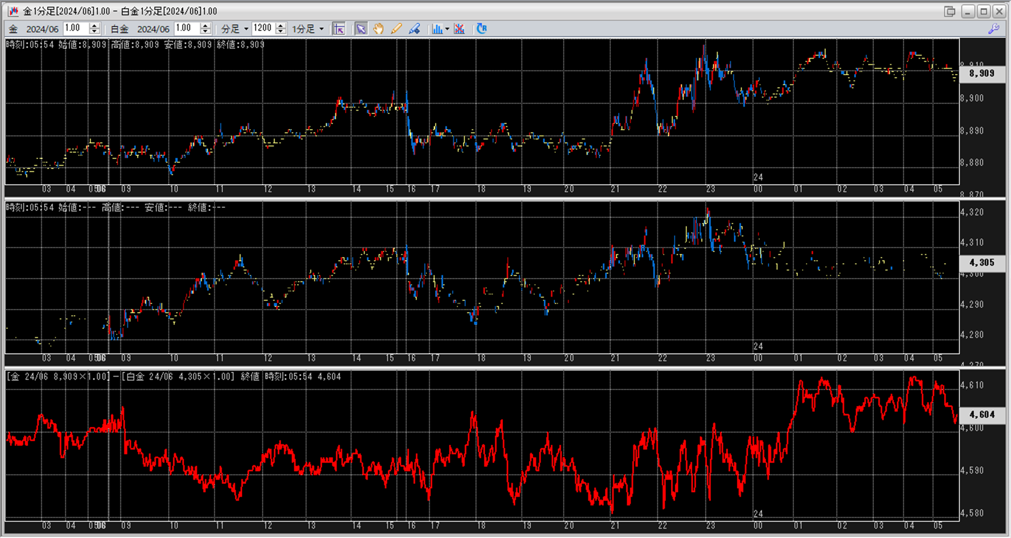先に鞘縮小の仕掛け金売り1枚-白金買い2枚を手仕舞う予定です。