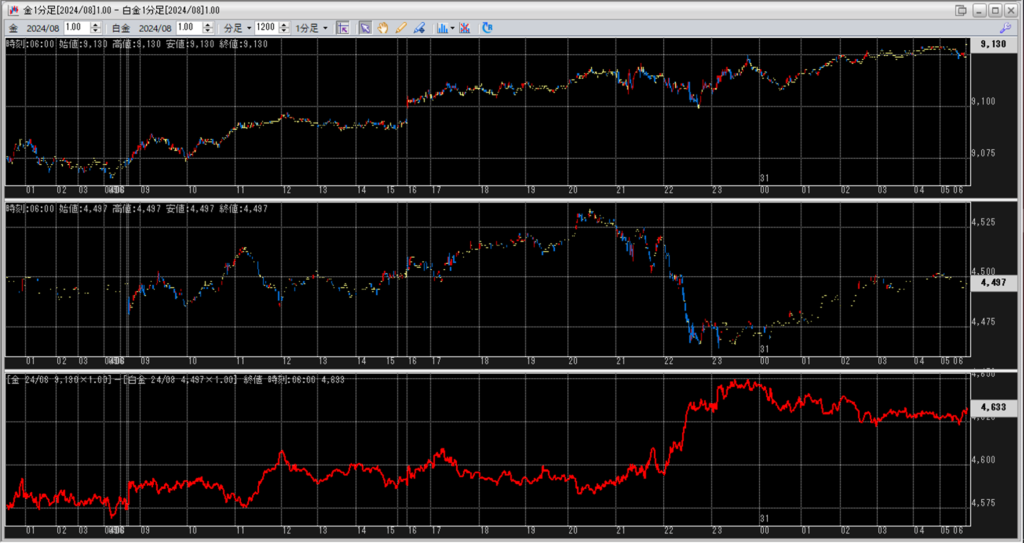 金白金鞘値動きのチャートを張り付けています。