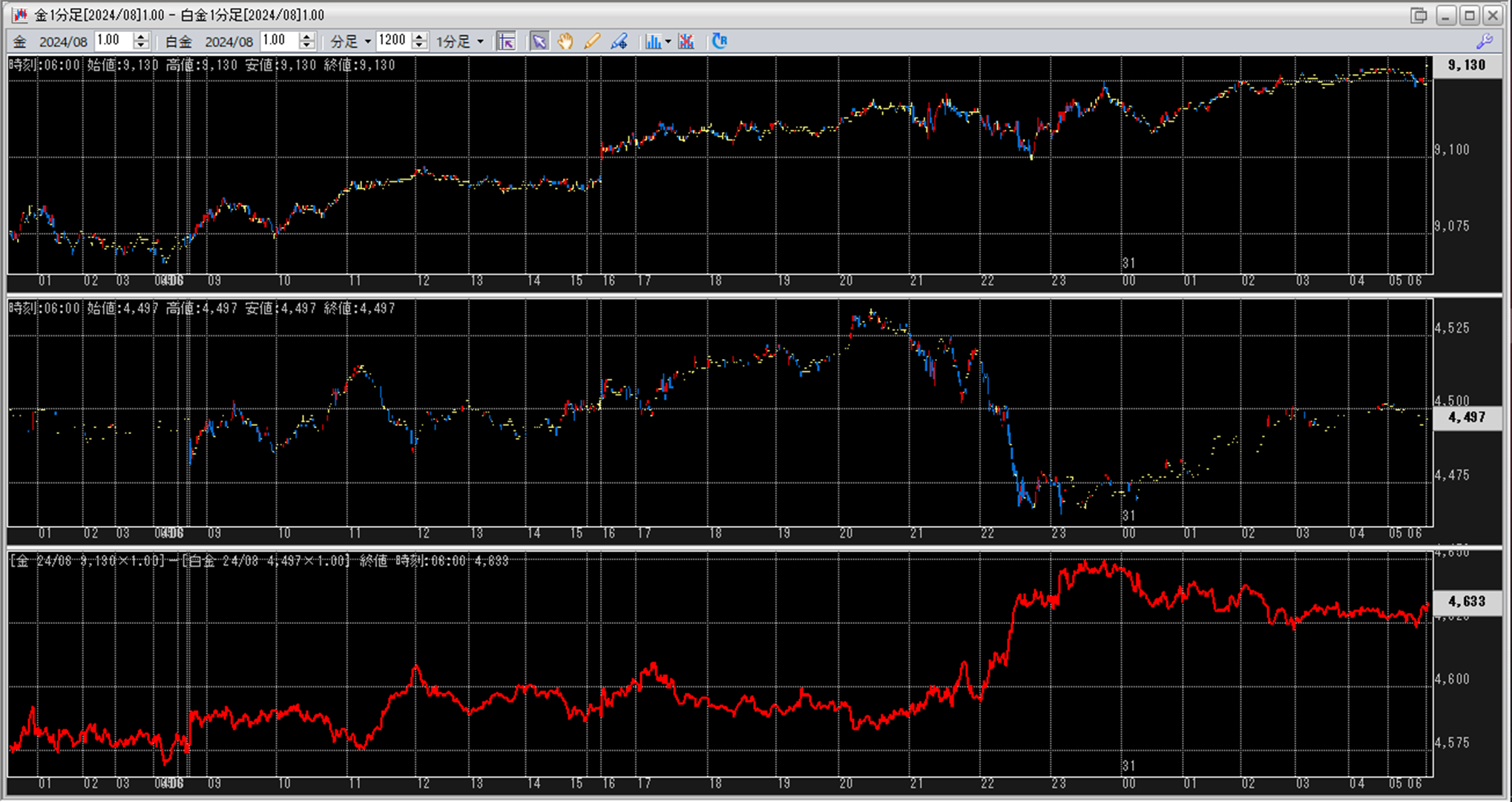 上:大阪取引所 金 2024年8月限 1分足