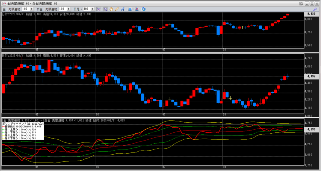 金白金の鞘をボリンジャーバンドで見ていきます。