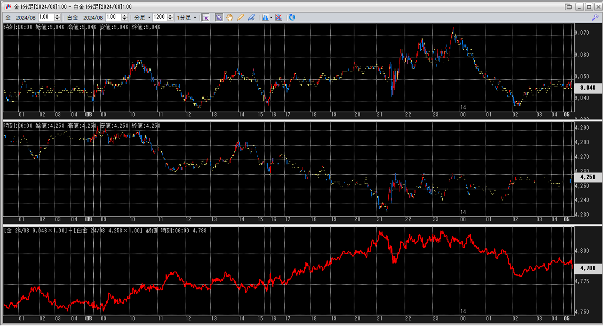 下:金白金鞘(金白金の価格差 = 金1グラムの価格 - 白金1グラムの価格)
