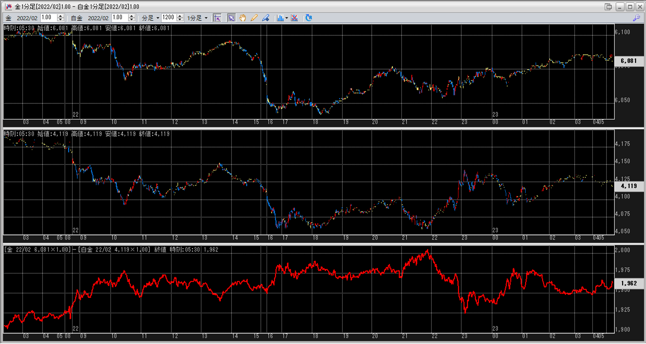 2021年3月22日8:45~3月23日5:30 金白金鞘値動きのチャートを張り付けています。
