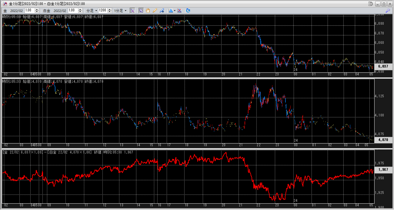中:大阪取引所 白金 2022年2月限 1分足