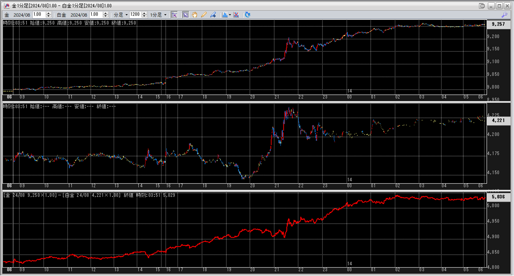 上:大阪取引所 金 2024年8月限 1分足