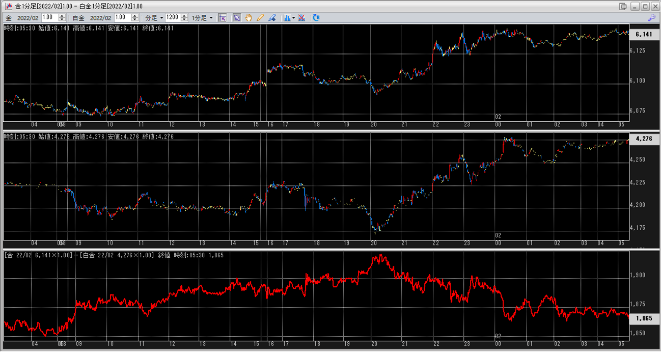 2021年4月1日8:45~4月2日5:30 金白金鞘値動きのチャートを張り付けています。