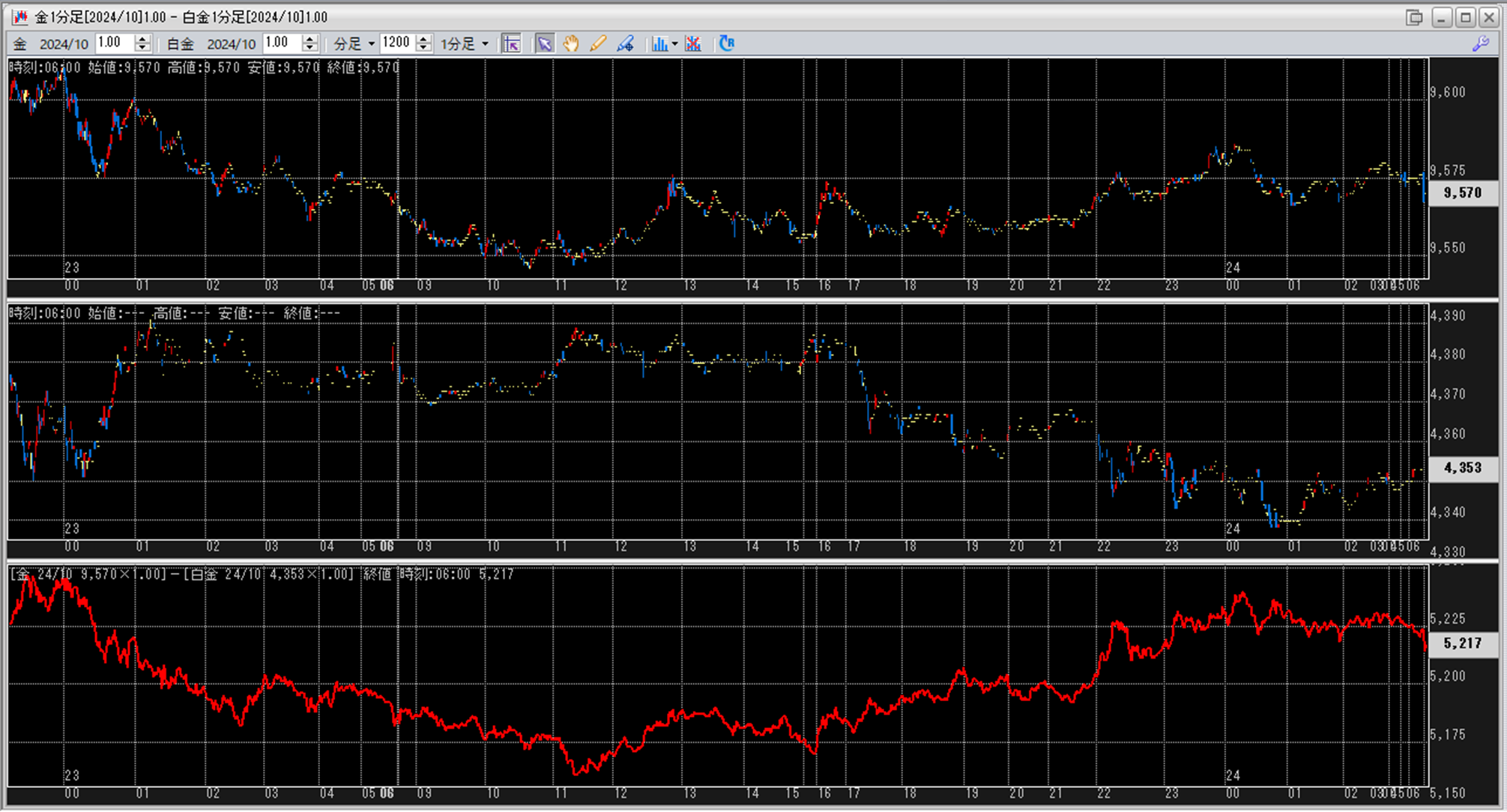 下:金白金鞘(金白金の価格差 = 金1グラムの価格 - 白金1グラムの価格)