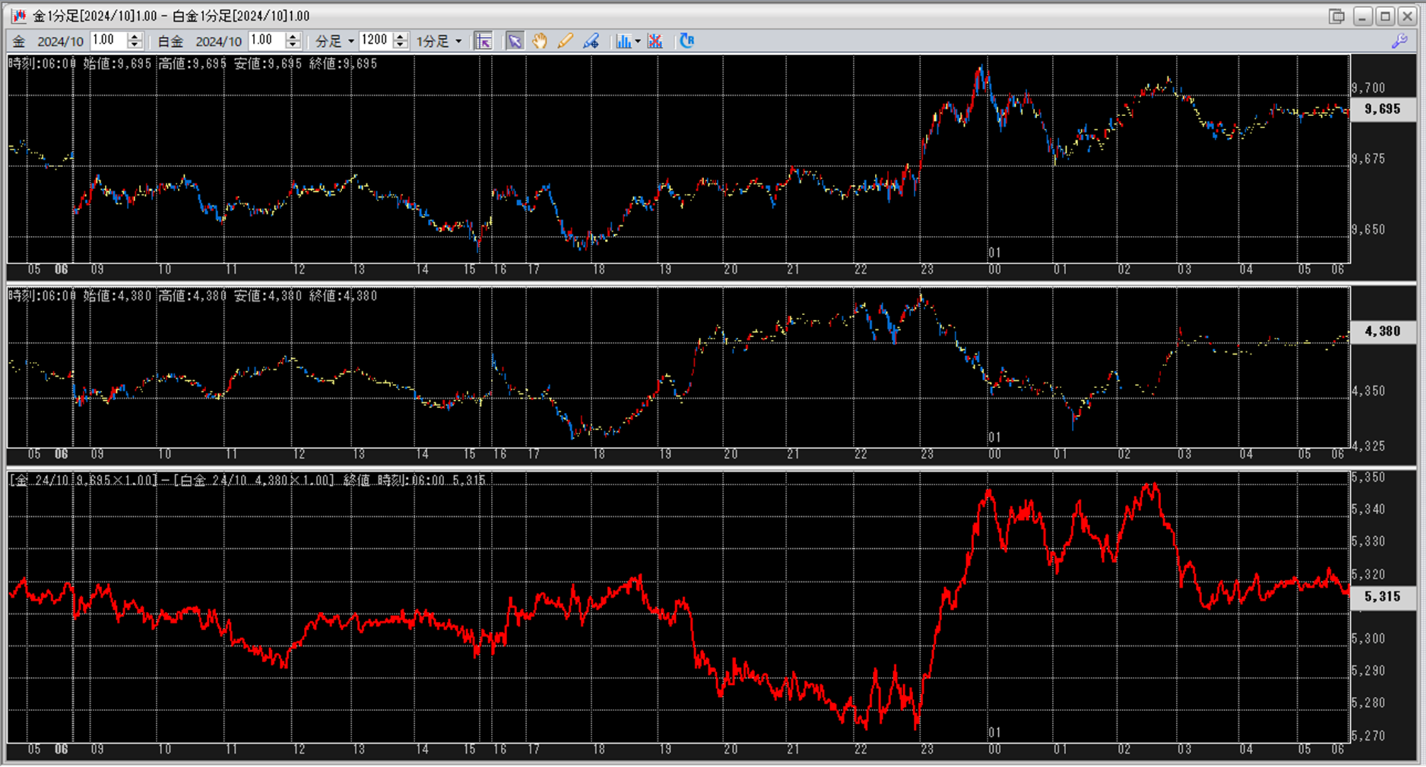 下:金白金鞘(金白金の価格差 = 金1グラムの価格 - 白金1グラムの価格)