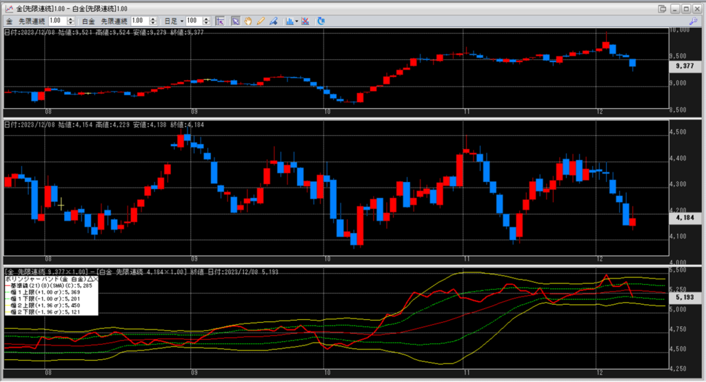 金白金の鞘をボリンジャーバンドで見ていきます。