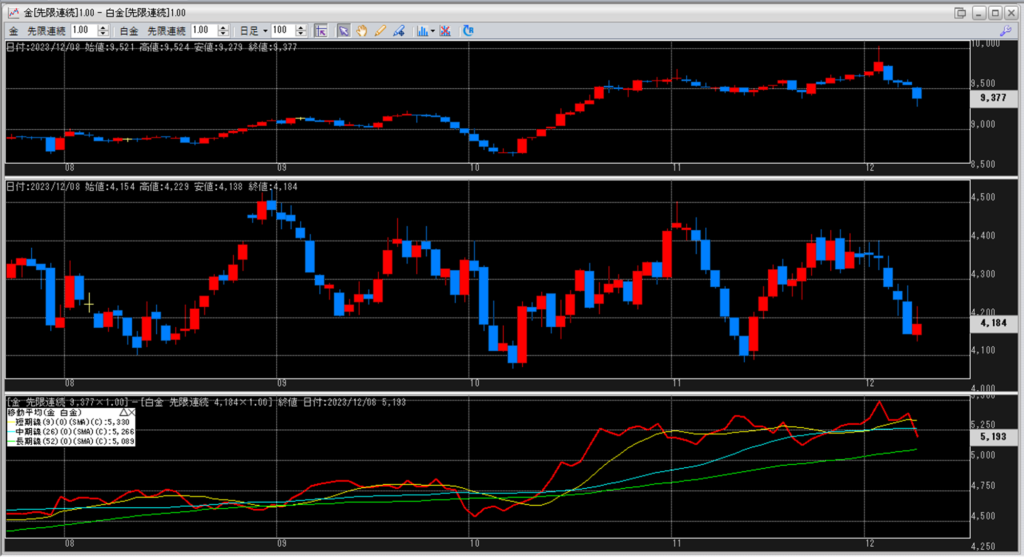下記に金白金鞘の移動平均線のチャートを貼り付けています。