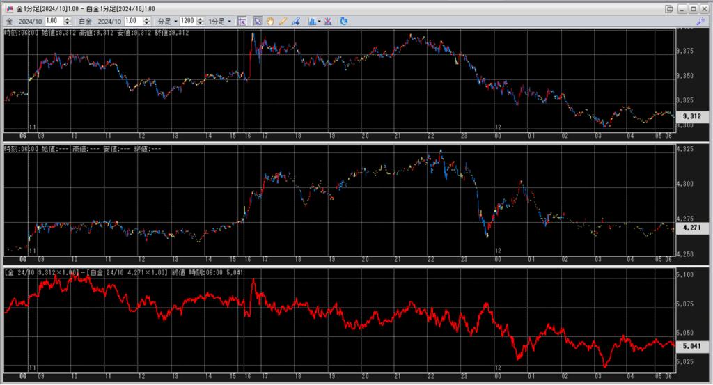 短期的には、鞘縮小の仕掛け金売り1枚-白金買い2枚を建てそうな気がします。