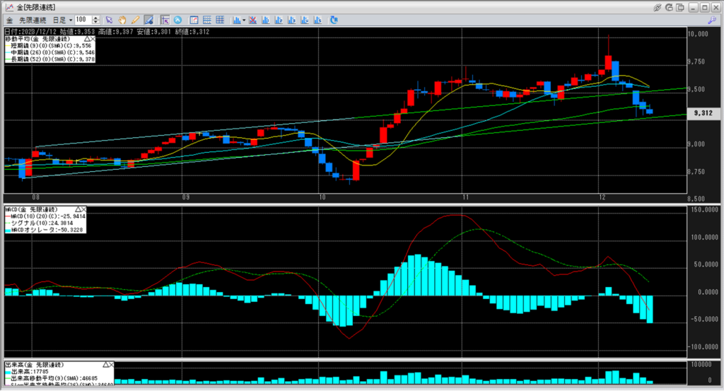 下記に金白金鞘の移動平均線のチャートを貼り付けています。