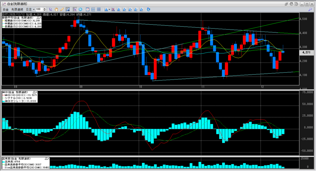 白金のチャートを見ると、4,100円から4,200円を下値とし、