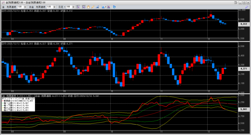 金白金の鞘をボリンジャーバンドで見ていきます。