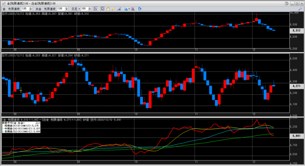 金白金の鞘の移動平均を見ていきます。