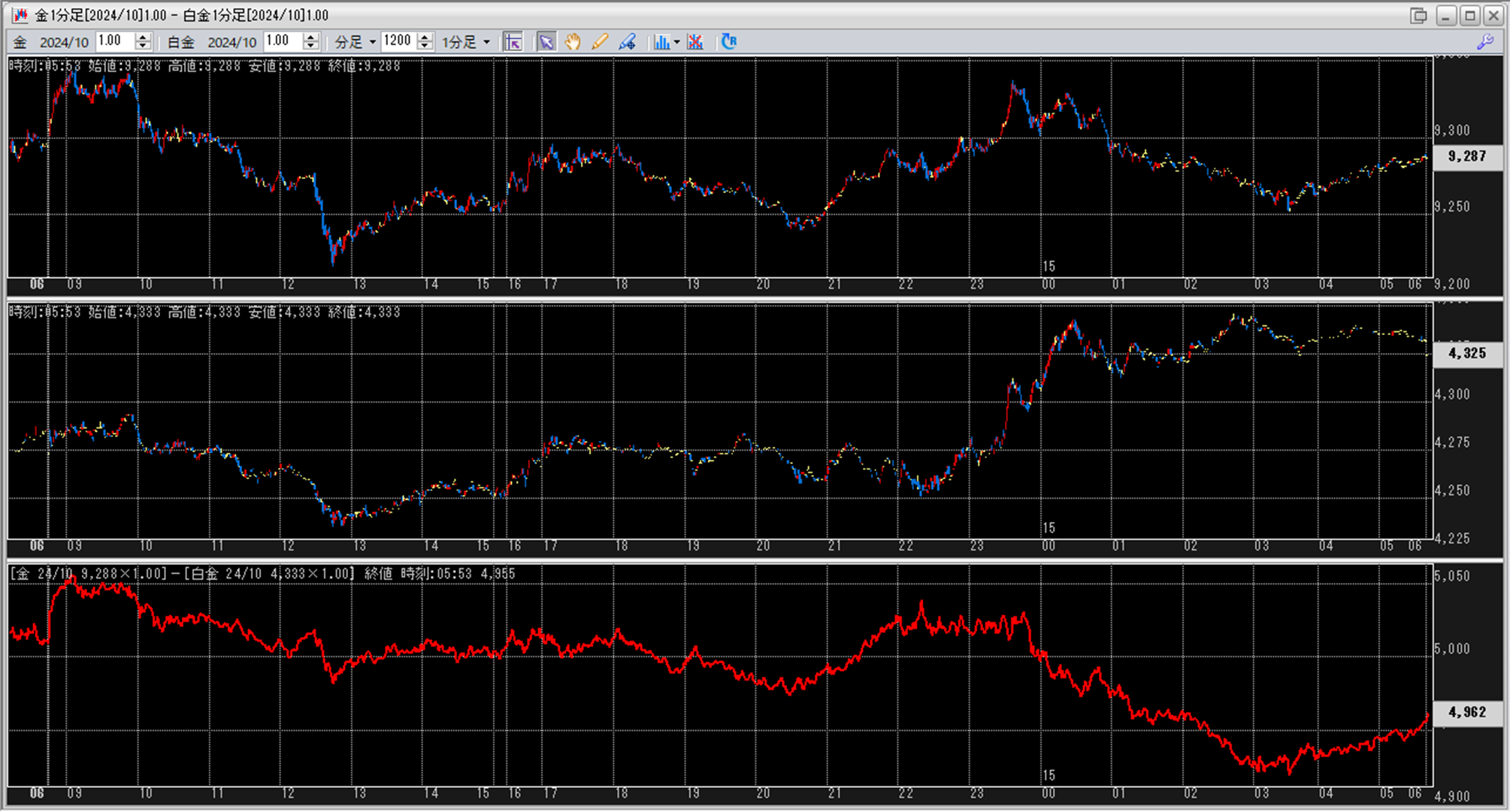 中:大阪取引所 白金 2024年10月限 1分足