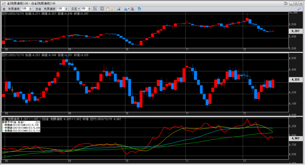 金白金の鞘の移動平均を見ていきます。
