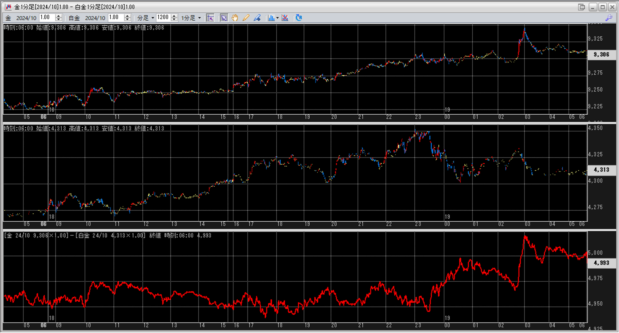 上:大阪取引所 金 2024年10月限 1分足