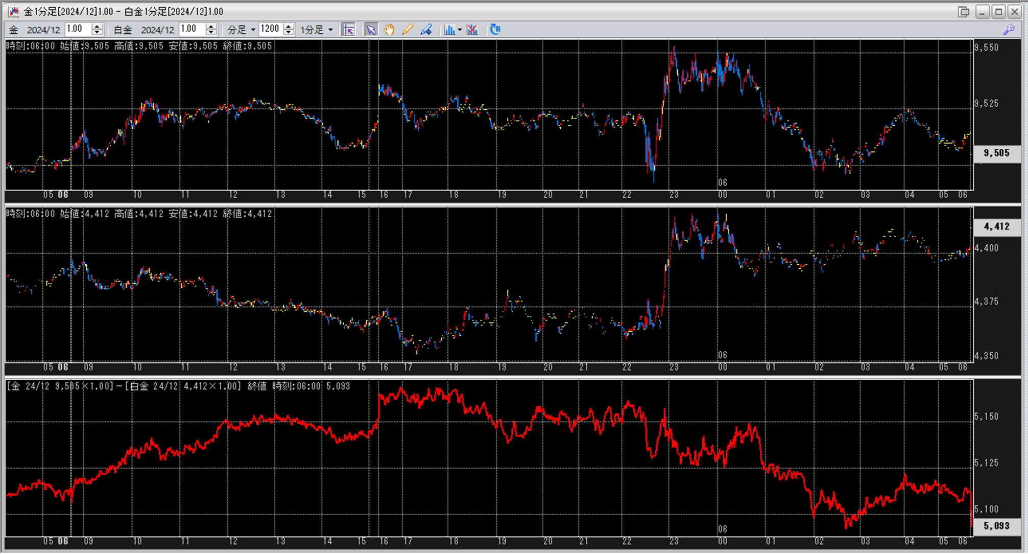 中:大阪取引所 白金 2024年12月限 1分足