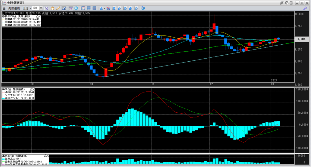 下記に金白金鞘の移動平均線のチャートを貼り付けています。