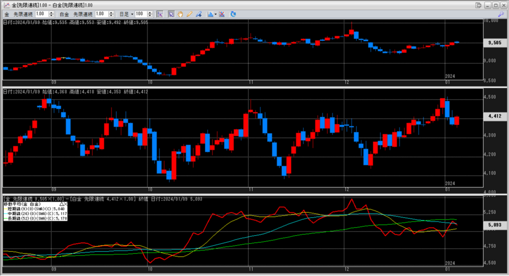 金白金の鞘の移動平均を見ていきます。