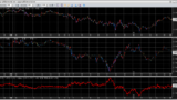 移動平均は、短期線は下向き、中期線は上向き、長期線は横向きになっています。