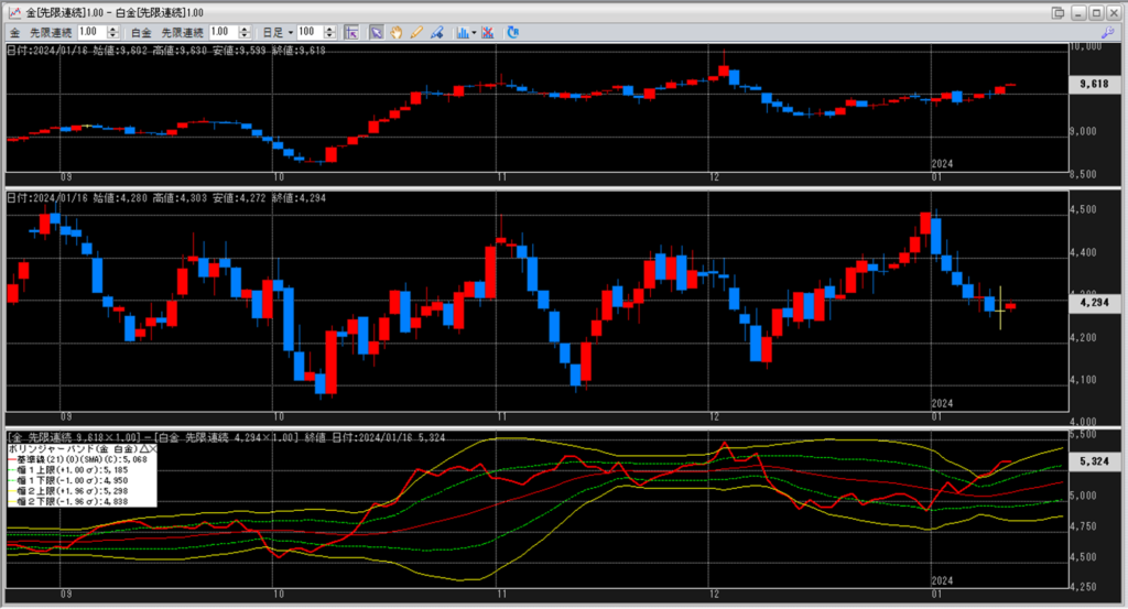 金白金の鞘をボリンジャーバンドで見ていきます。