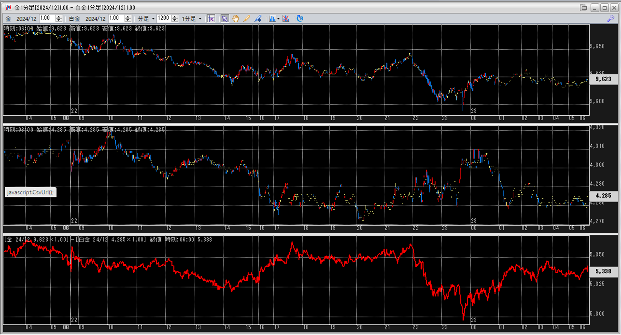 1/23 6:00の金白金の鞘の値段は、5,338円となっております。