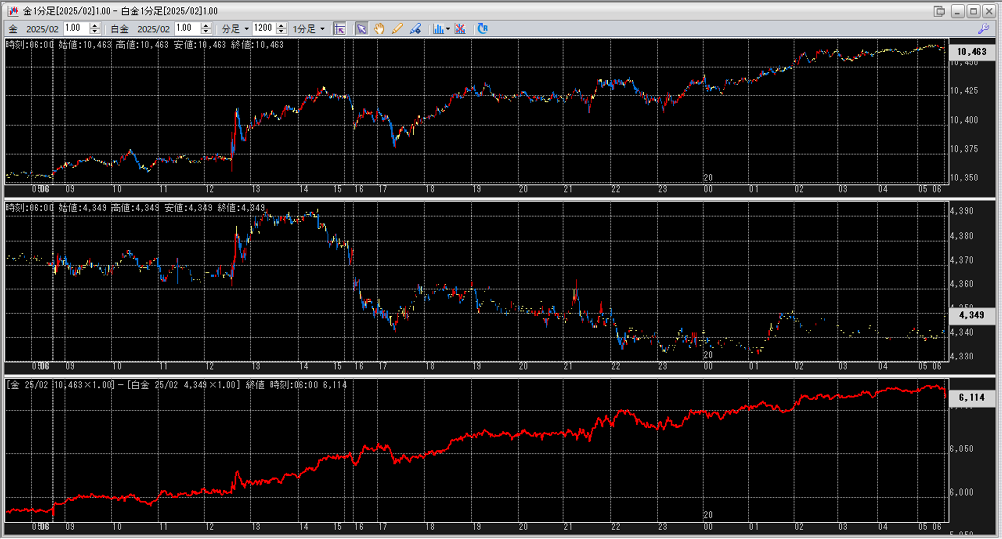 +1σを超え、金白金鞘は6,000円台に突入し、更に大きく鞘は拡大してきました。