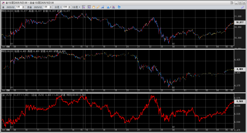 約+2σを割り込んできましたが、金白金鞘は6,000円台を維持し続けています。