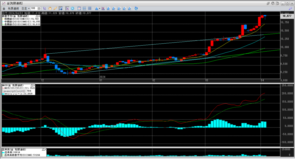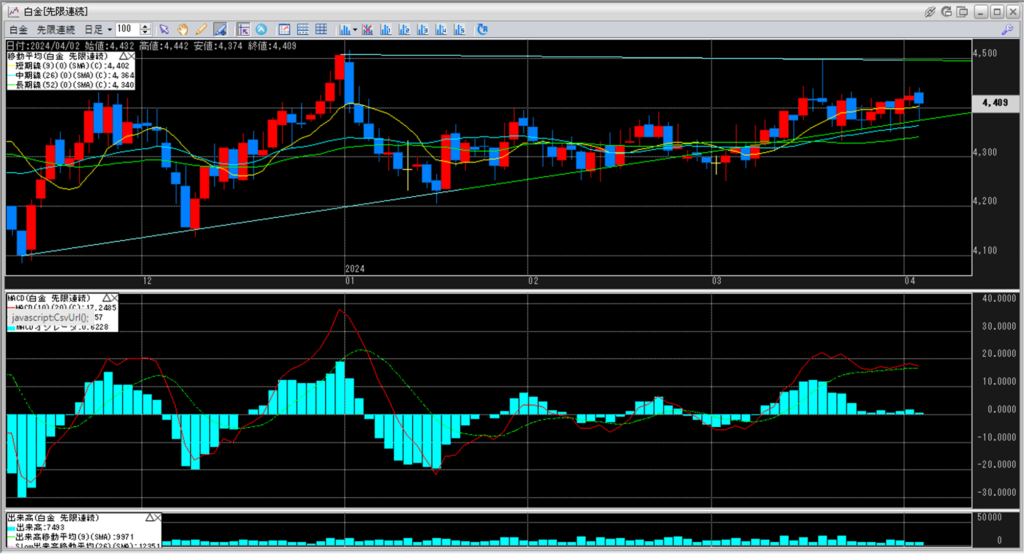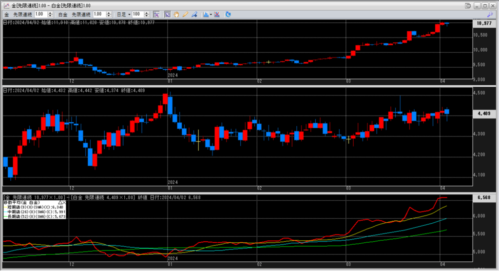 下記に金白金鞘の移動平均線のチャートを貼り付けています。