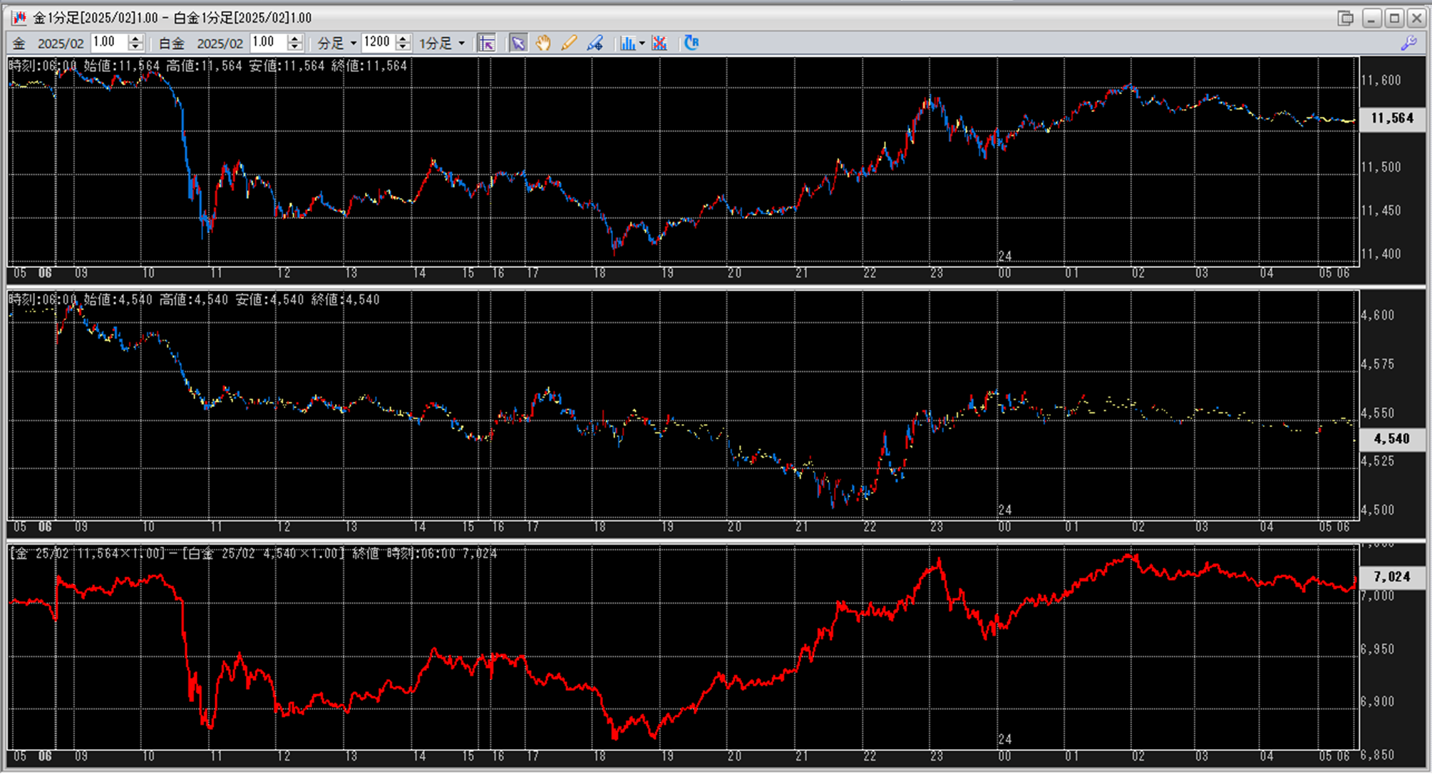 下:金白金鞘(金白金の価格差 = 金1グラムの価格 - 白金1グラムの価格)