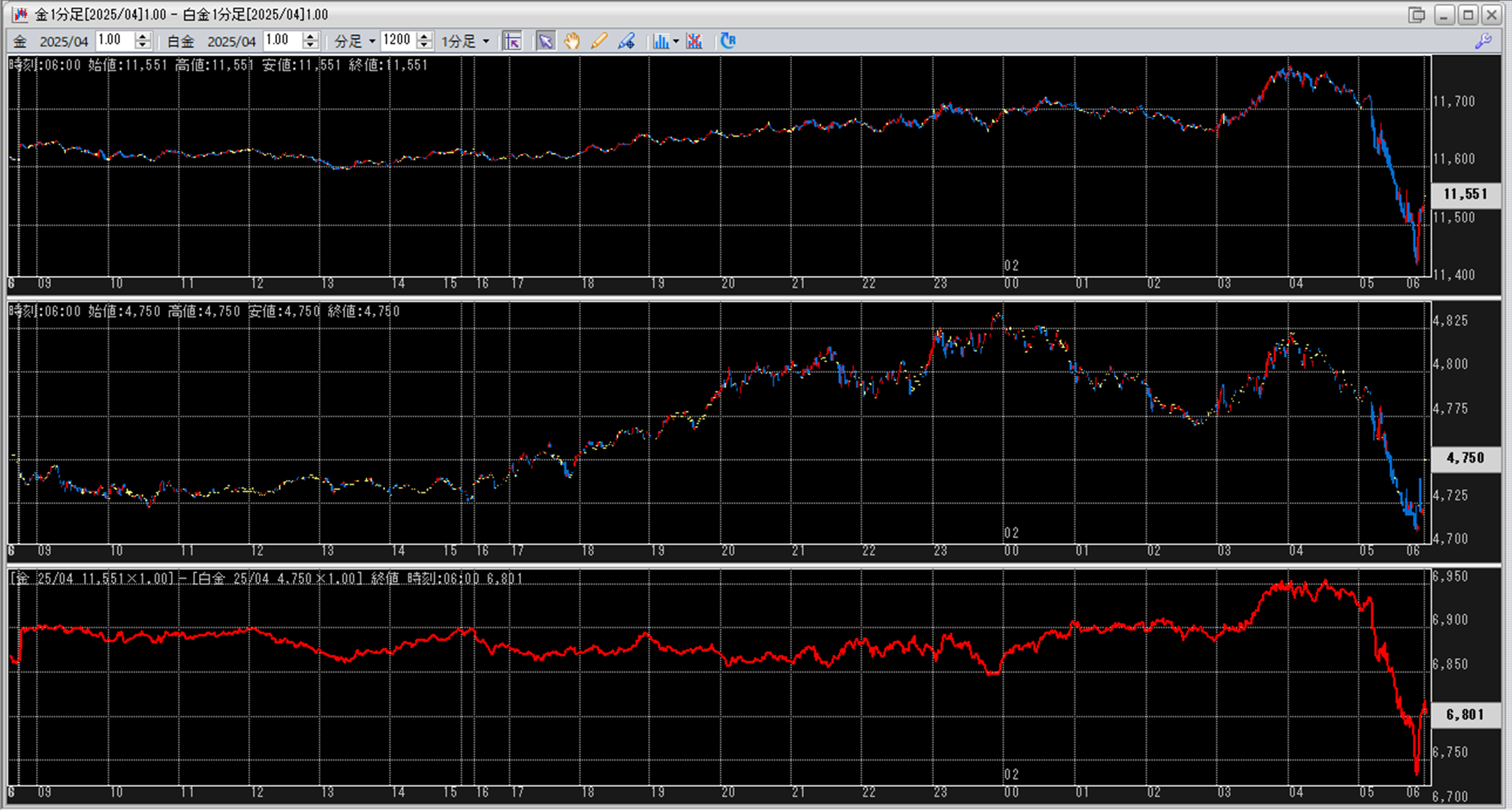上:大阪取引所 金 2025年4月限 1分足