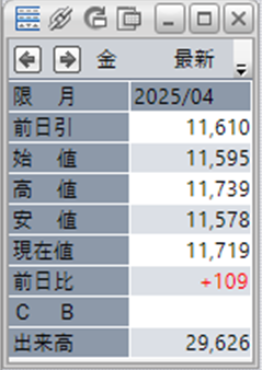 -1σである6,752円を超えた6,809円で6:00の取引を終えています。