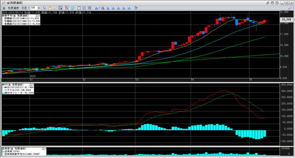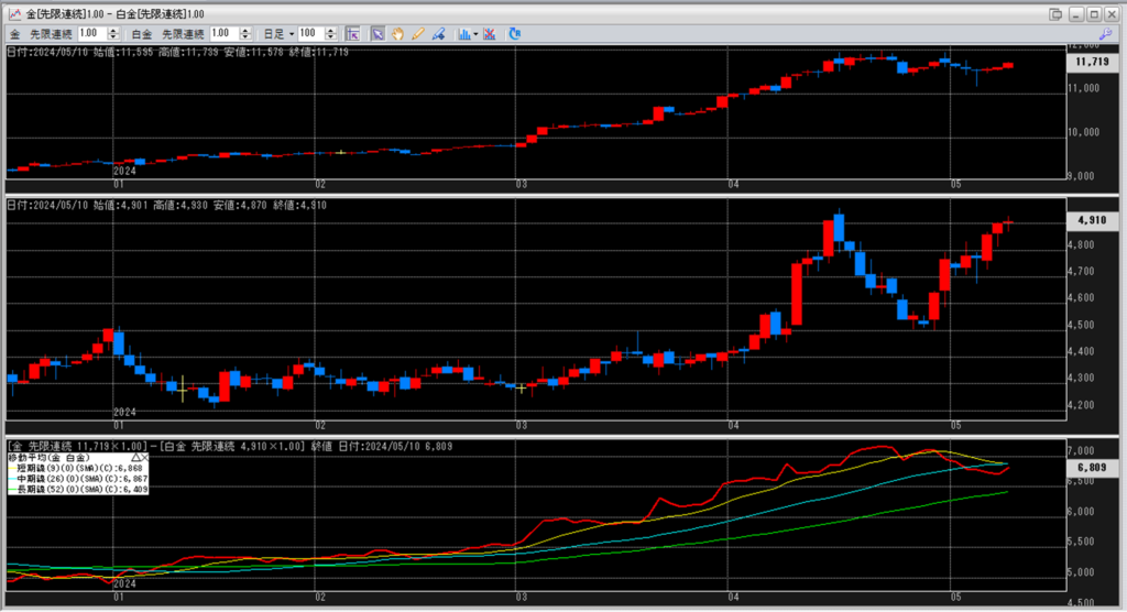 下記に金白金鞘の移動平均線のチャートを貼り付けています。
