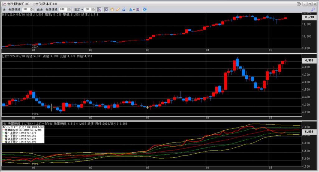 金白金の鞘をボリンジャーバンドで見ていきます。