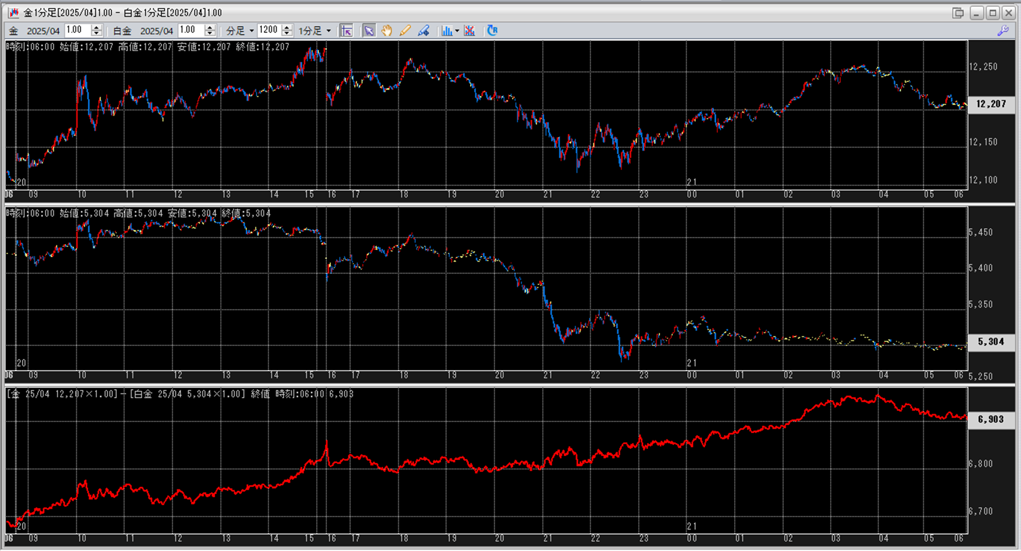 現在、鞘拡大の仕掛け金買い1枚-白金売り2枚を1組、保持しています。