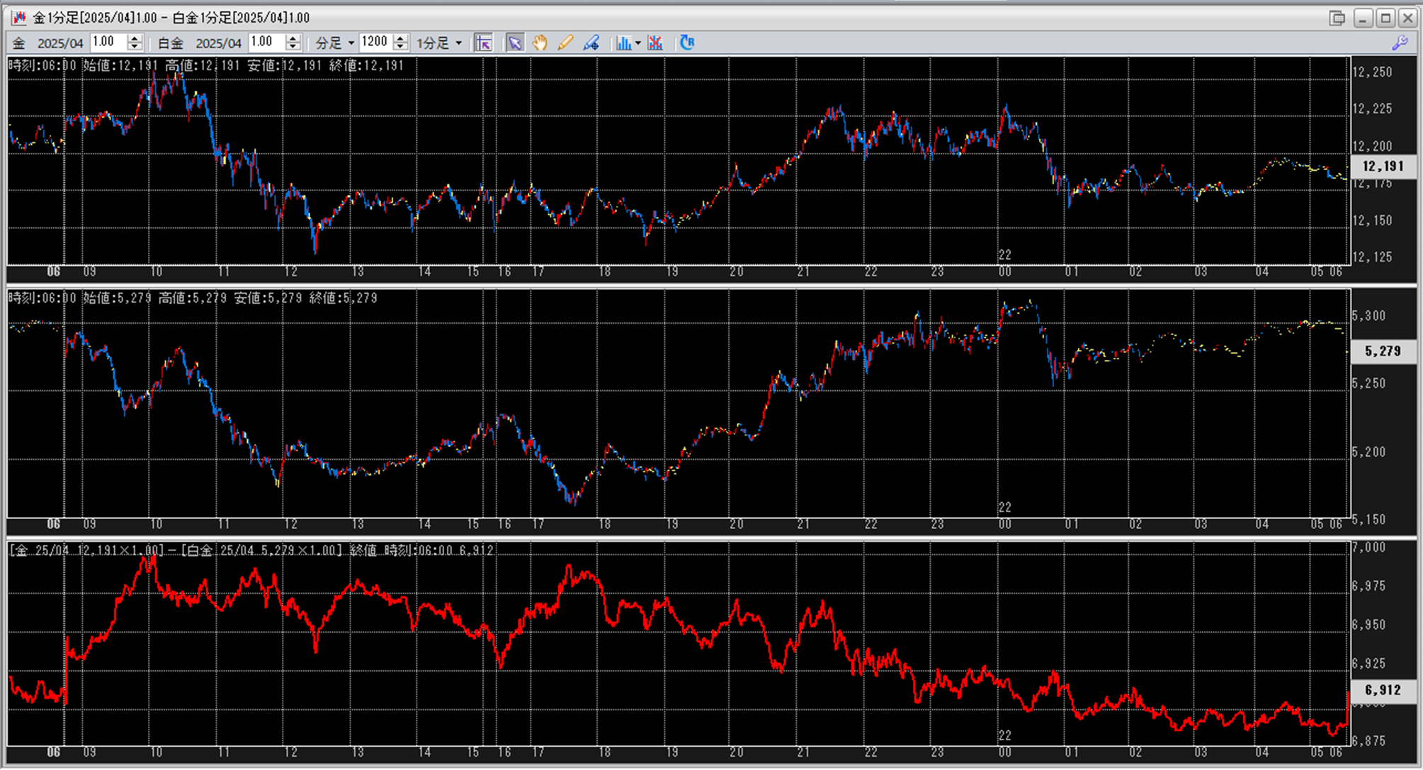 下:金白金鞘(金白金の価格差 = 金1グラムの価格 - 白金1グラムの価格)