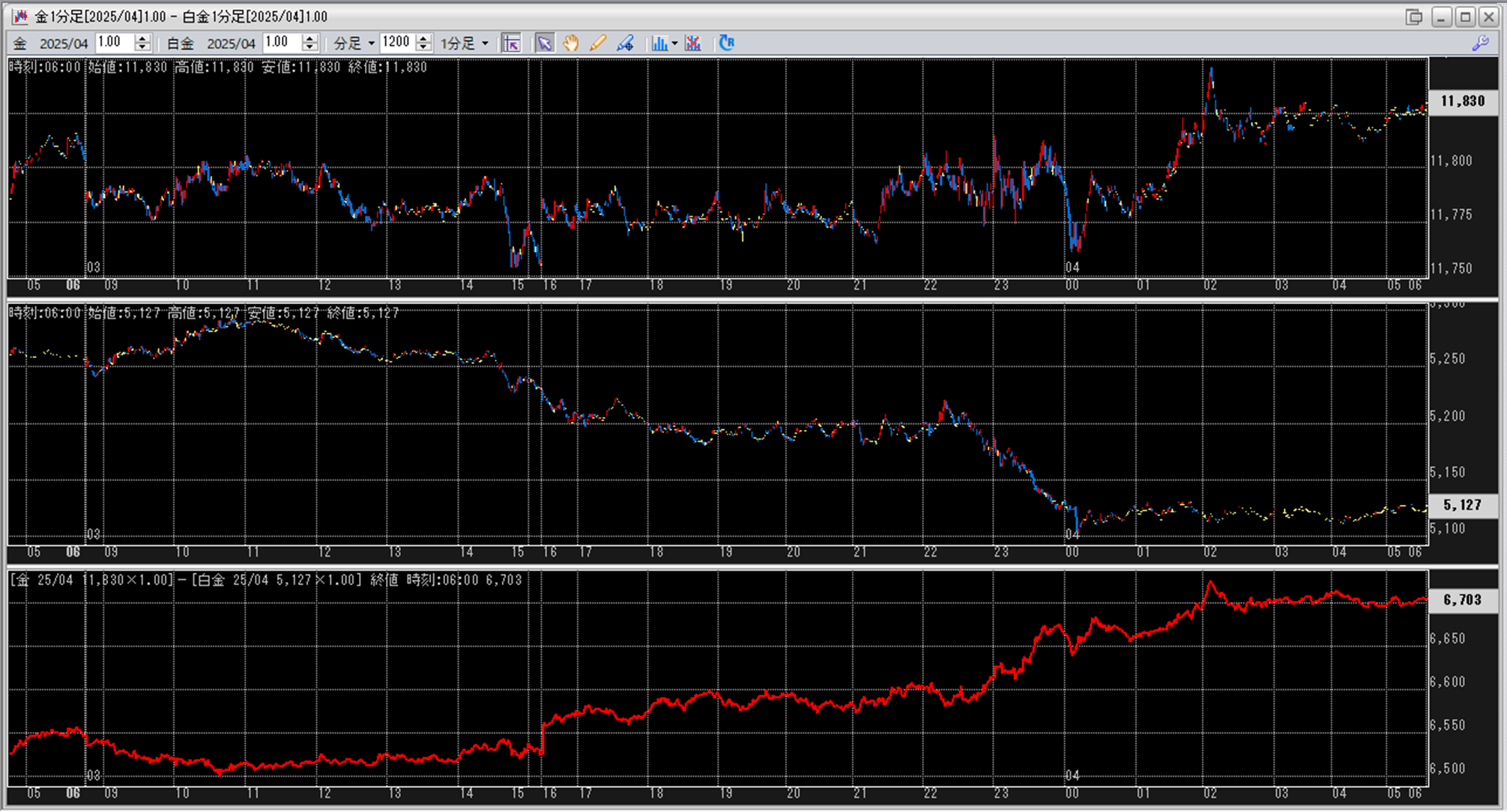 上:大阪取引所 金 2025年4月限 1分足