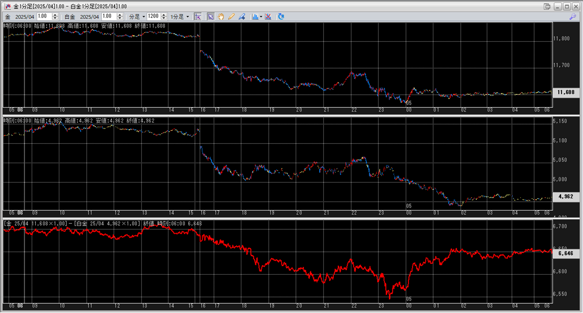 下:金白金鞘(金白金の価格差 = 金1グラムの価格 - 白金1グラムの価格)