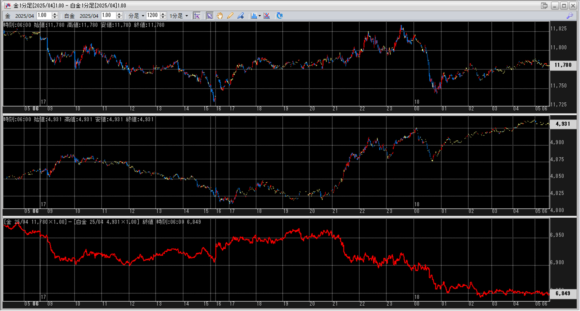 中:大阪取引所 白金 2025年4月限 1分足