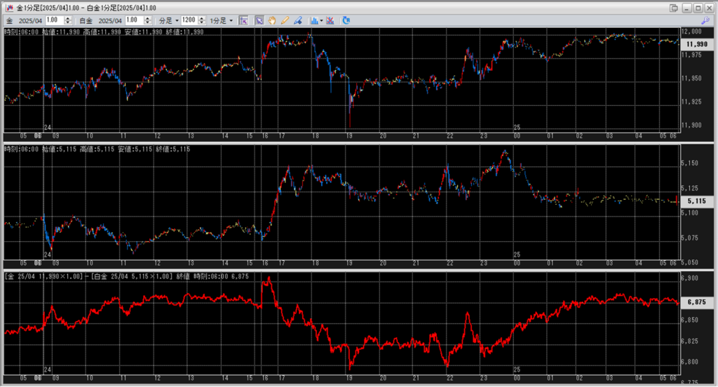 下:金白金鞘(金白金の価格差 = 金1グラムの価格 - 白金1グラムの価格)