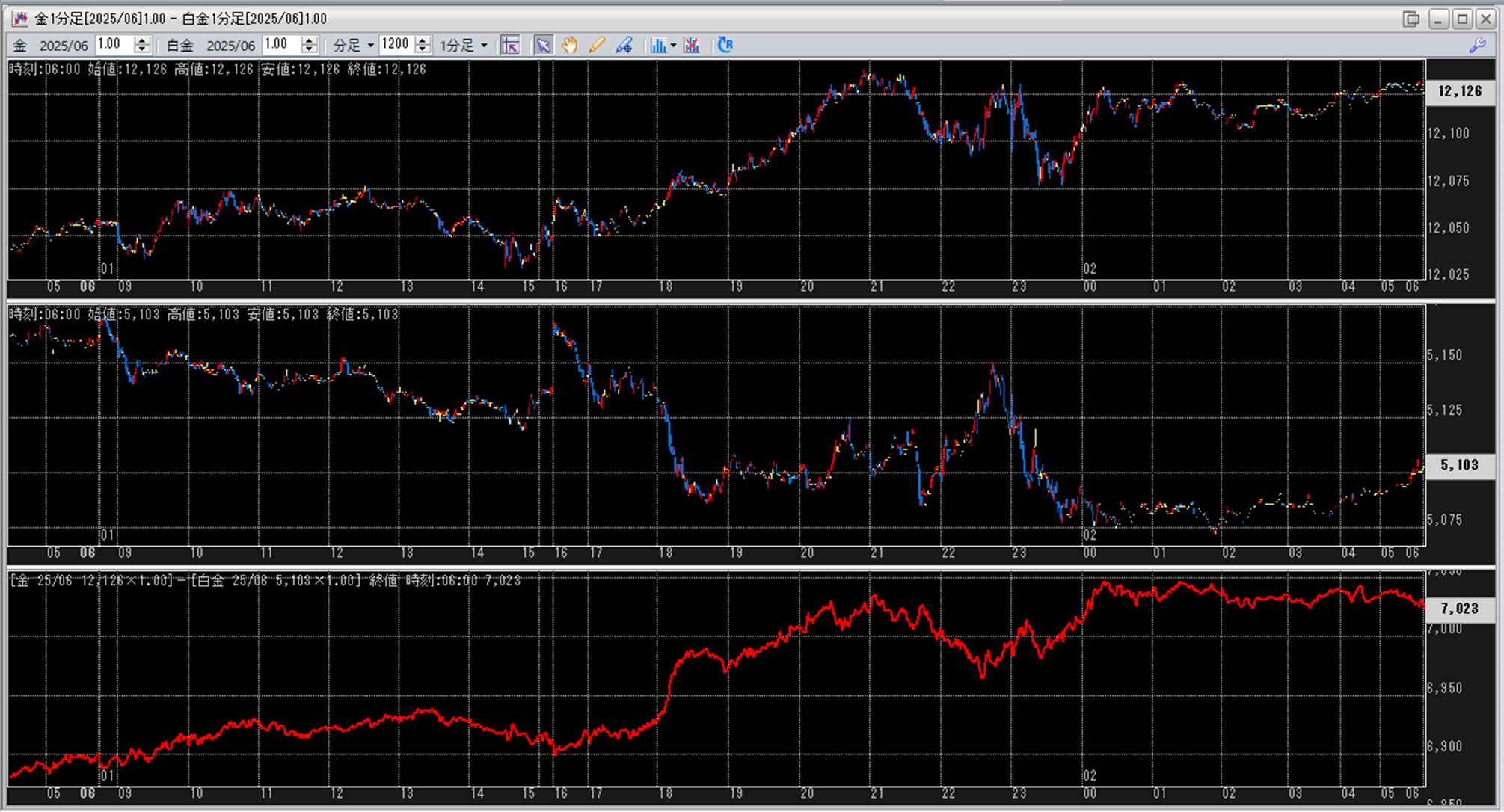 鞘拡大の途中で少しの時間だけ、鞘拡大の仕掛け金買い1枚-白金売り2枚、