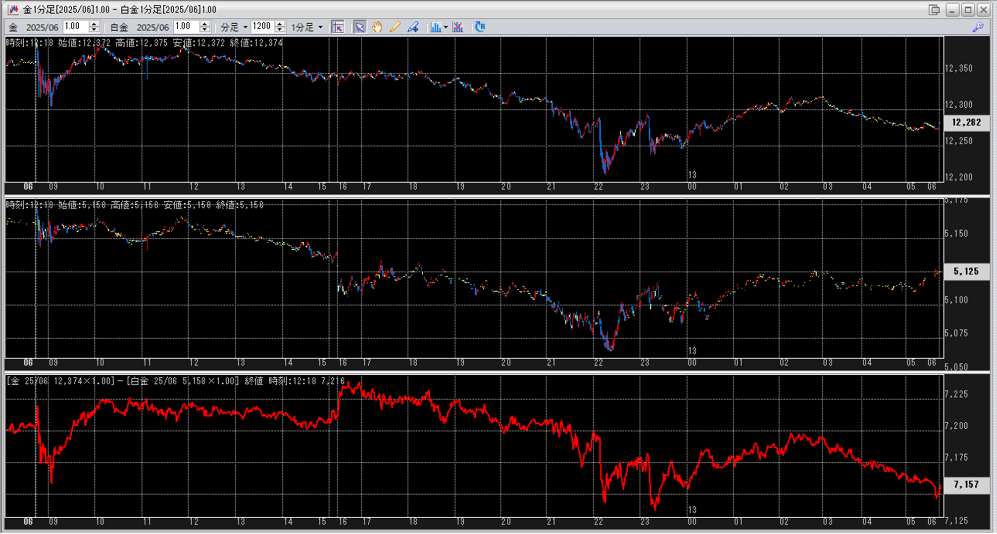 上:大阪取引所 金 2025年6月限 1分足